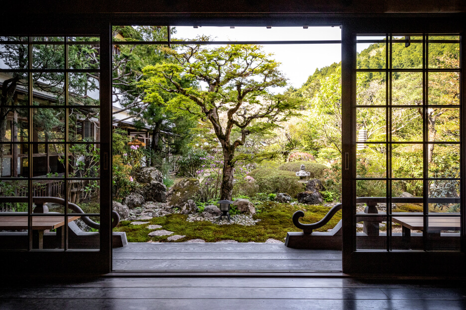 森蘊先生作庭のお庭です。持明院の中に入らないとみることの出来ない中庭は、季節ごとに見所があり、お庭に下りて散策も出来ます。