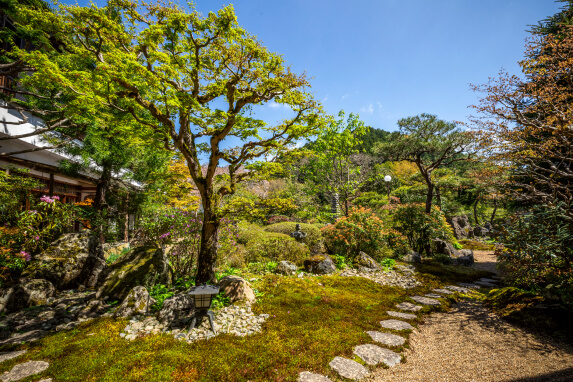 森蘊先生作庭のお庭です。持明院の中に入らないとみることの出来ない中庭は、季節ごとに見所があり、お庭に下りて散策も出来ます。